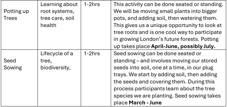 Join us at the Westminster Ponds Centre for Environmental Education activities, now run in conjunction with ReForest London's Community Tree Nursery.